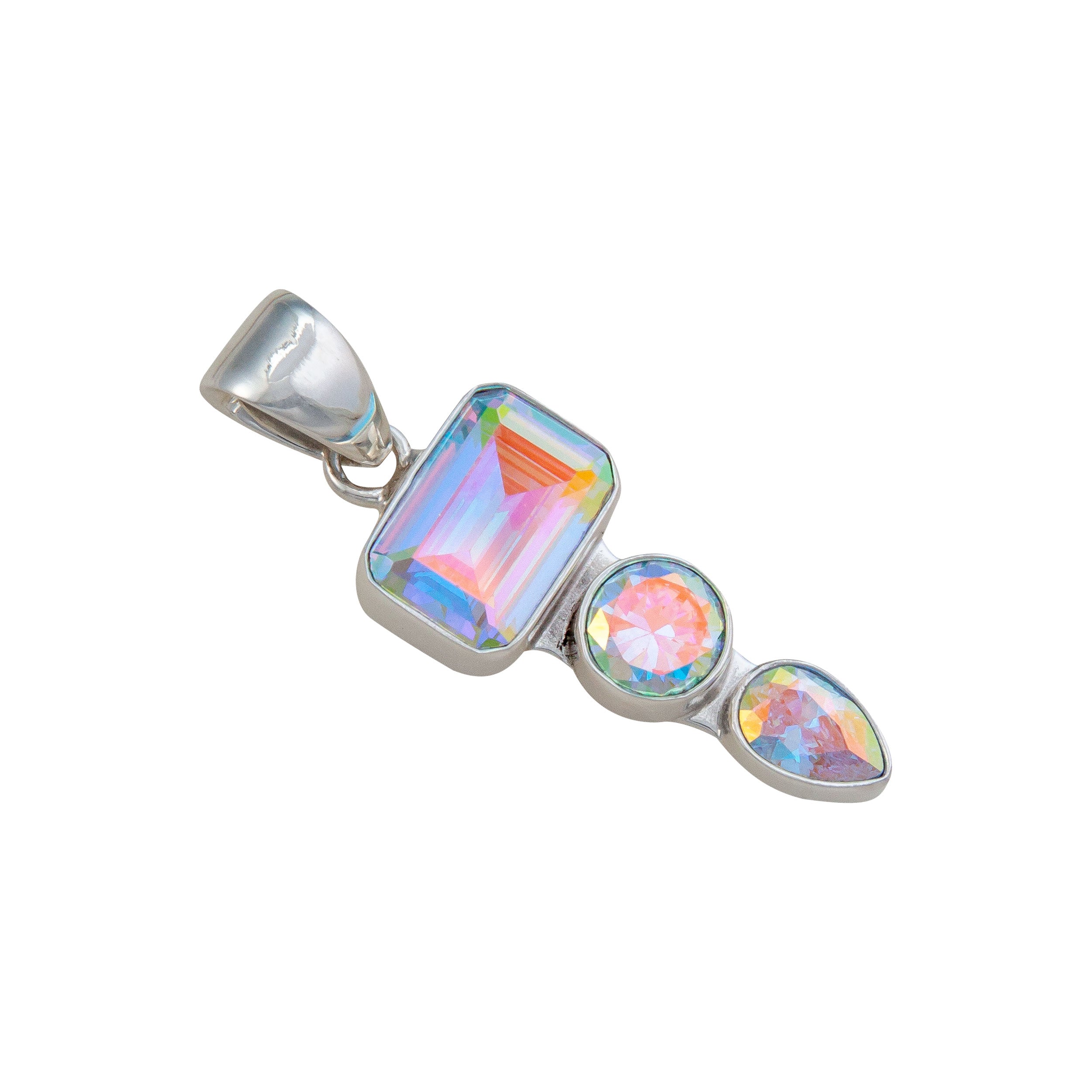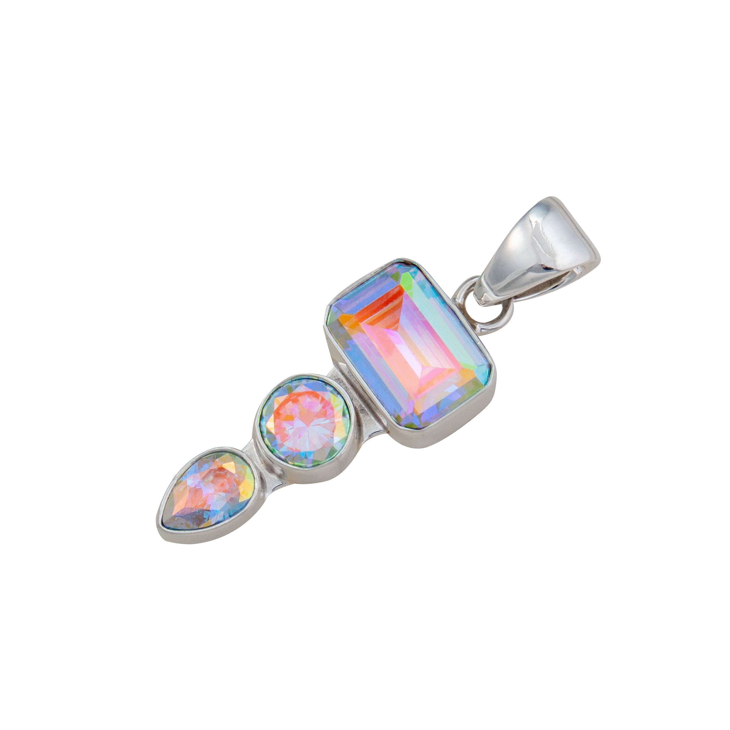 Catch the ethereal shimmer of three delicate pendants dancing together in lustrous sterling silver. This whimsical triple pendant design captures the mesmerizing essence of mercury mist—fluid, mysterious, and utterly enchanting. Each pendant catches light differently, creating a dynamic interplay of reflections that shifts with your every move. Perfect for layering or wearing as a statement piece, this versatile beauty adds an otherworldly touch to any outfit. Crafted from premium sterling silver for lasting elegance and durability.